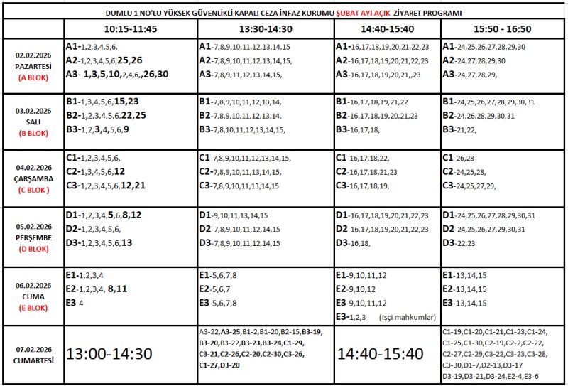 Şubat Ayı Açık Görüş Ziyaret Programı