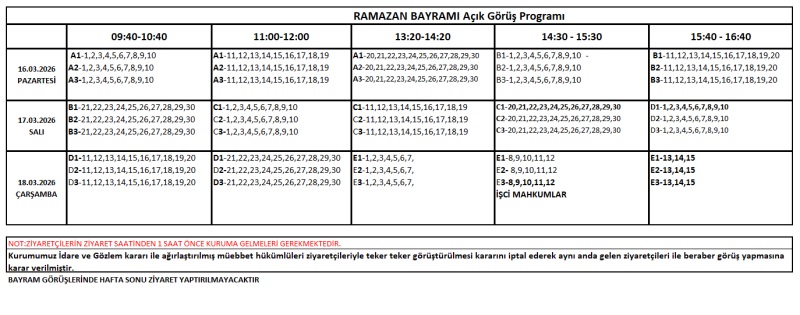 Ramazan Bayramı Açık Görüş Ziyaret Programı
